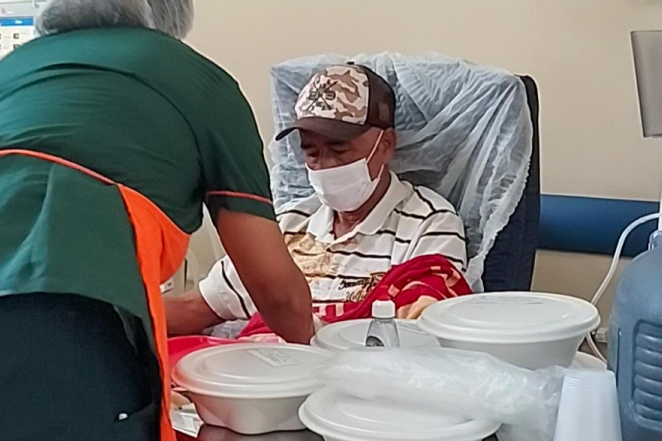 "Estou realmente satisfeito com a comida do hospital e a variedade no cardápio é um bônus. Como eu poderia reclamar com um cuidado tão atencioso como esse?", brinca Dudimar Paxiúba.