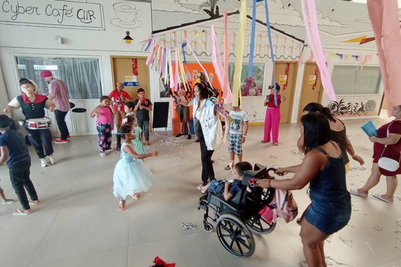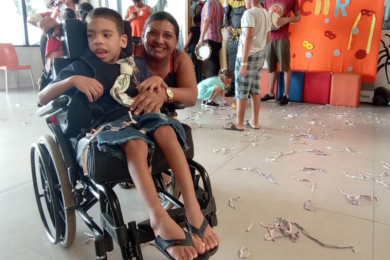 Entre os foliões entusiasmados, esteve o pequeno Ryan Borges, de 5 anos, que com diagnóstico de paralisia cerebral, realiza reabilitação no CER IV. Acompanhado da mãe, Josiani Borges, 39 anos, pontua que achou ótimo o evento que envolveu toda a comunidade assistida.