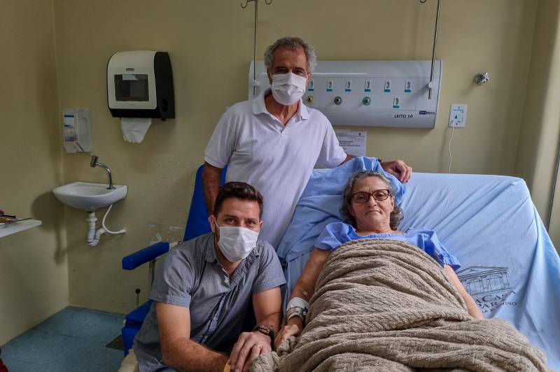 A paciente na companhia do filho e do marido: à espera da alta hospitalar e da celebração em casaO cirurgião destacou ainda que o procedimento realizado em Ana Cristina é 100% da Santa Casa. “É outro marco aqui pra gente, muito perto de ter um ano do primeiro caso, que aconteceu dia 26 de fevereiro de 2023. A gente espera que tenha mais doações, para podermos tirar outros doentes da fila. Nesse período, essa foi a quinta cirurgia”, informou o cirurgião.