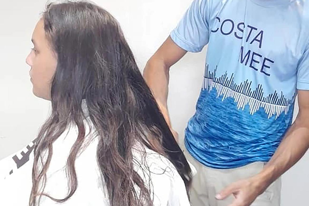 Quando tinha três anos de idade, Marcos combinou com a mãe que deixaria o cabelo crescer para doar quando completasse 15 anos. A idade chegou neste início de ano e ele cortou as madeixas para cumprir o prometido.