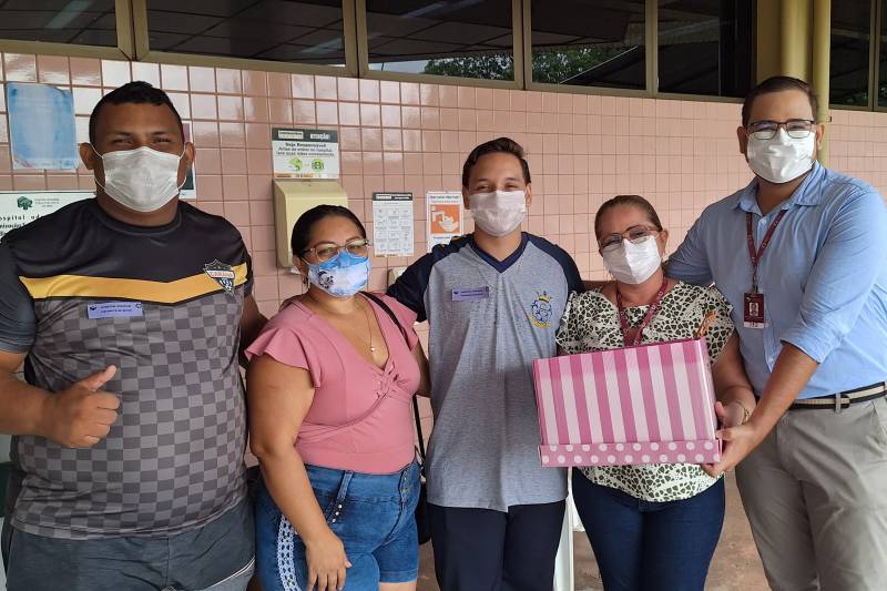 Doação - A família de Marcos foi recebida pelo supervisor de humanização, Douglas Caldeira, e pela coordenadora do setor de oncologia da unidade, Janete Aguiar.