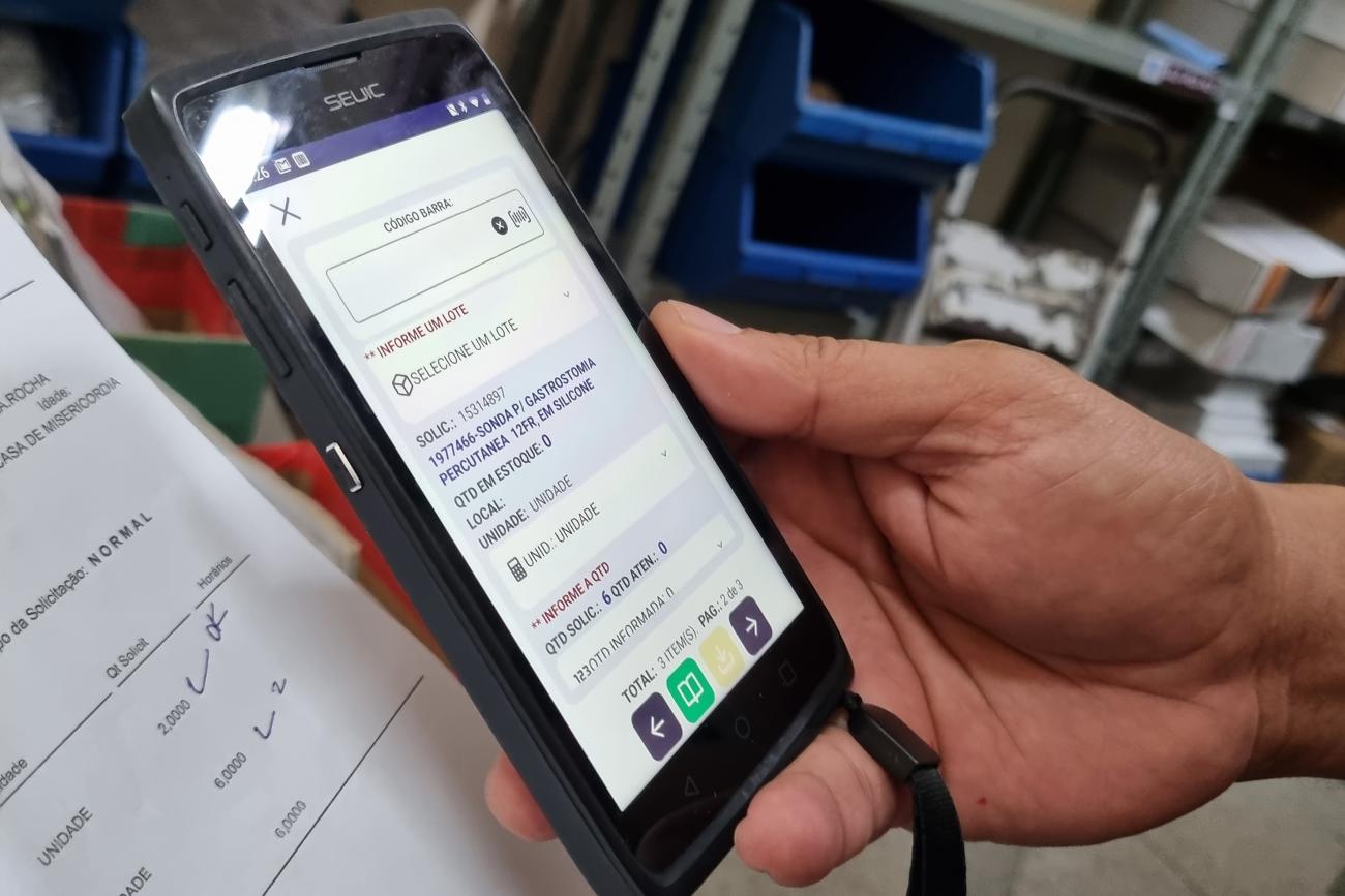 No almoxarifado da Santa Casa, App e nova tecnologia melhoram o processo.