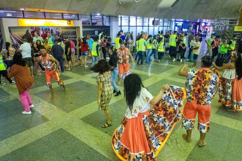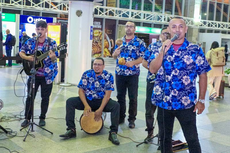 Ao som de carimbó, Setur recebe passageiros do voo inaugural Belém-Brasília, da Azul