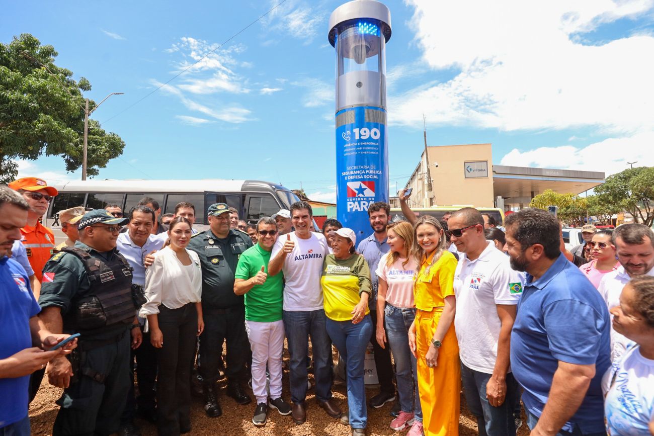 Para fortalecer e descentralizar os investimentos e ações em segurança pública no Pará, o Governo do Estado entregou nesta sexta-feira, 23, oito totens de segurança pública instalados no município de Altamira, sudoeste paraense. A iniciativa faz parte do projeto "Cidades Inteligentes", que fortalece a parceria com os municípios, a fim de potencializar as ações preventivas de segurança, com o uso intensivo de tecnologia, incluindo recursos de videomonitoramento e inteligência artificial. O lançamento do equipamento foi feito pelo governador Helder Barbalho, junto a vice-governadora Hana Ghassan, no totem instalado na Avenida João Rodrigues com a Av. Jader Barbalho.