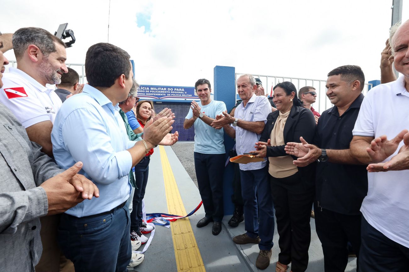 Governador Helder Barbalho e autoridades da área de segurança pública na entrega de mais uma obra no sudeste paraenseHelder Barbalho destacou a importância social do aumento do policiamento em Itupiranga e região. “É um grande ganho, porque é mais efetivo da Polícia Militar. Estamos ampliando o número de policiais militares para Itupiranga, mas também aos distritos, às localidades mais distantes. Parabéns ao trabalho e à nova casa da Polícia Militar que estamos entregando”, reforçou o chefe do Executivo estadual.