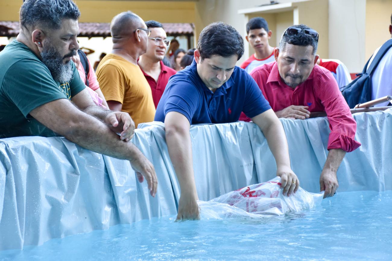 O evento foi realizado, nesta quinta-feira (29), e contou com a presença do titular da Sectet, Victor Dias, que fez o povoamento dos peixes no equipamento, cerca de 350 peixes foram colocados. O gestor ressaltou a importância deste projeto inovador.