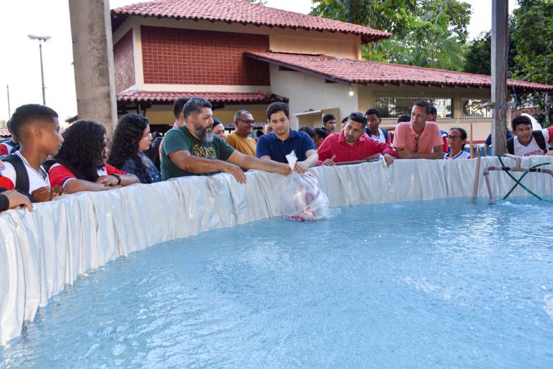Foram colocados aproximadamente 350 peixes da espécie matrinxã, muito comum no Amazonas e bastante consumido no município de Cametá, como afirma o professor de Biologia e técnico em aquicultura da Escola, Márcio Rodrigues.