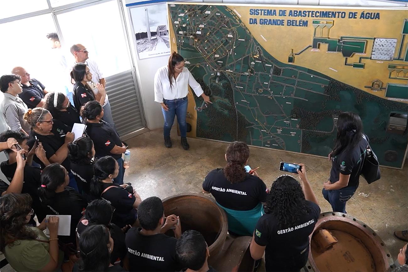 O grupo de 30 estudantes percorreu as galerias de decantação, floculação, filtros e conheceram a Central de Operação, reservatórios e o processo de distribuição da água. Técnica em Saneamento na Cosanpa, Letícia Santos diz que as visitas são importantes para que a comunidade entenda a complexidade dos serviços e necessidade de valorização dos recursos hídricos. “Aqui as pessoas conseguem ter uma visão de todo esse sistema e valorize mais esse recurso, que é tão essencial. A gente tem muitos esforços sendo colocados aqui, seja trabalho, produtos químicos, investimentos, estrutura para que a água chegue na casa das pessoas em qualidade e quantidade. Tudo isso precisa ser conservado”, conta Letícia.