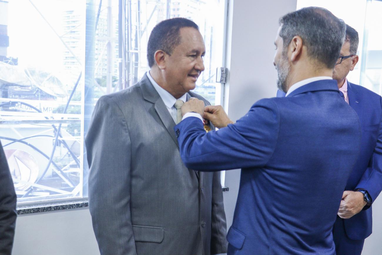 Ualame Machado, presidente do Consep e secretário de Estado de Segurança Pública e Defesa Social, condecorou os homenageados - autoridades do Sistema de Segurança, do Poder Judiciário e da sociedade civil, que fazem parte do colegiado.