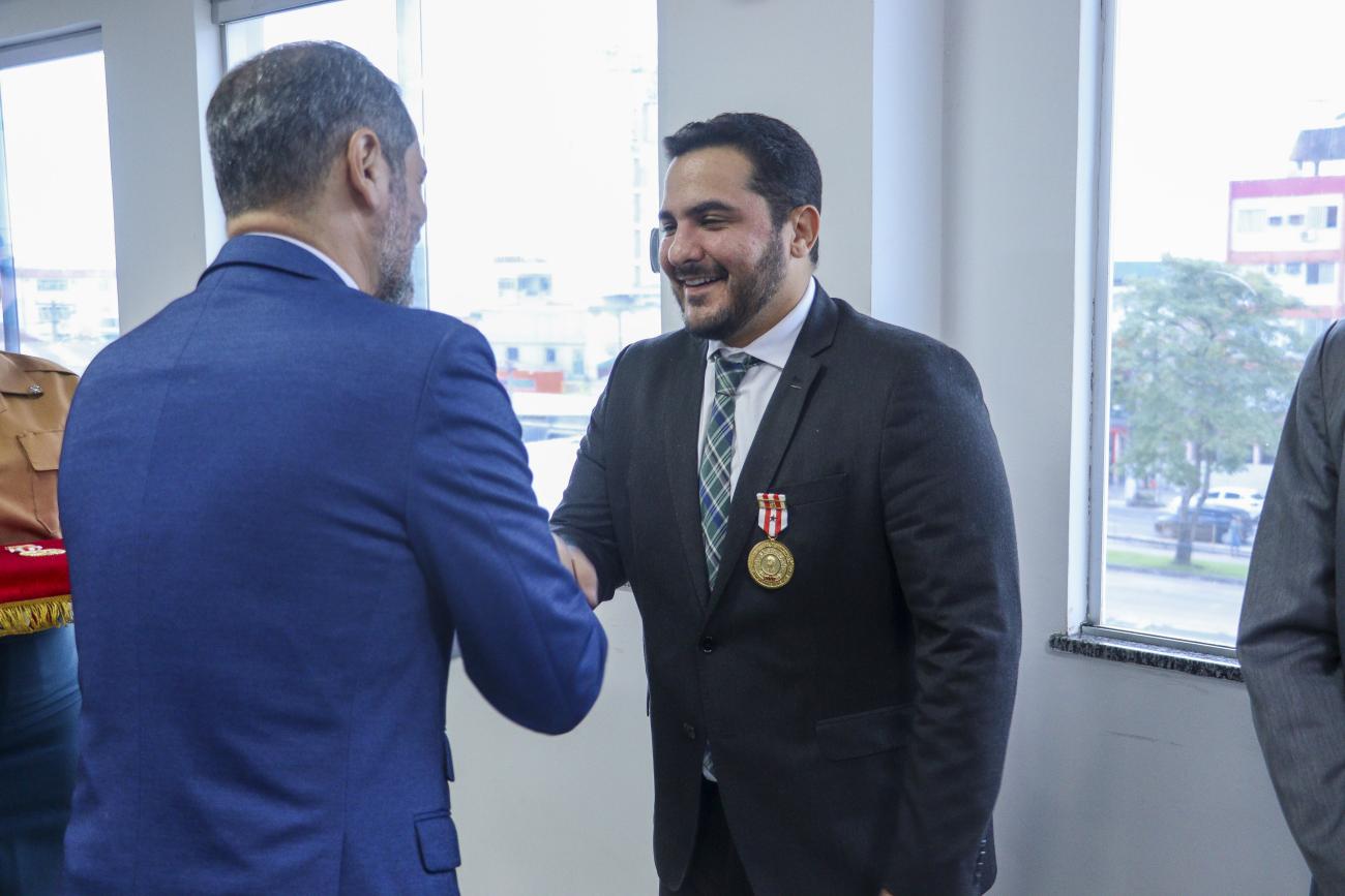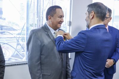 O presidente do Consep, Ualame Machado, na entrega da medalha ao delegado-geral Walter ResendeTrabalho eficiente - “Hoje comemoramos um dia especial para o Consep, que completa 28 anos, sendo o primeiro conselho deliberativo do Brasil a formar e decidir ações de segurança, com desenvolvimento de políticas públicas favoráveis para o bom cumprimento dessa atividade tão importante na estrutura da nossa sociedade, e que no Pará conta com membros que trabalham muito fortemente para que possamos atuar de forma mais eficiente em prol da segurança dos paraenses”, destacou Ualame Machado.