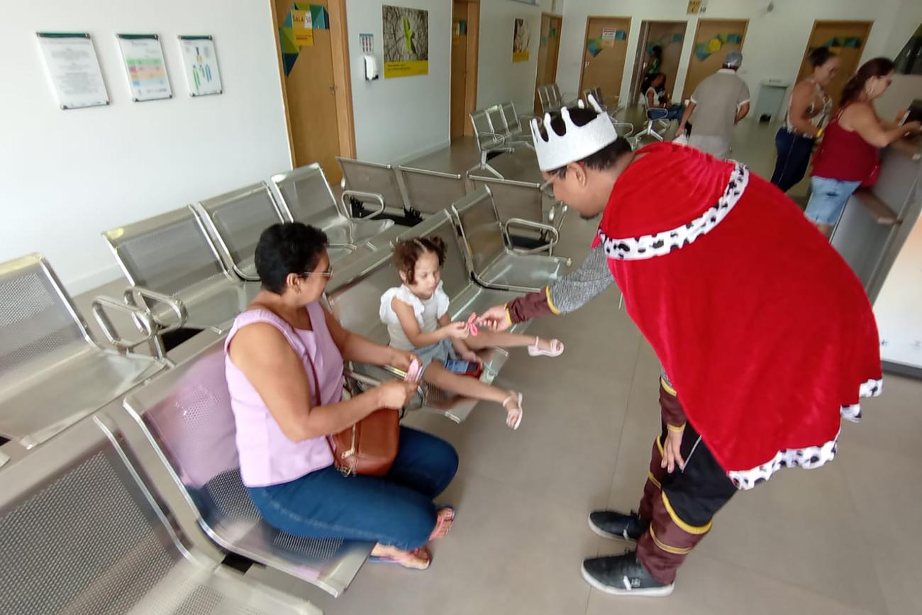 "Príncipe Encantado" entregou brindes para mulheres adultas e crianças que aguardavam atendimento