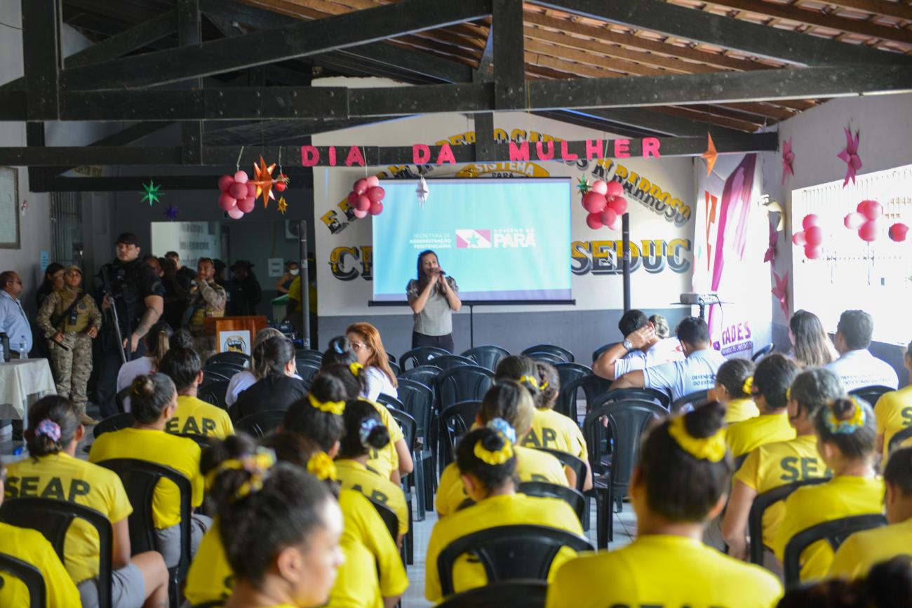 Neste dia 8 de março, a Secretaria de Estado de Administração Penitenciária (Seap) e a Defensoria Pública do Estado (DPE) realizaram o encerramento da programação do Projeto “Além das Grades”. A iniciativa garantiu uma programação especial e alusiva ao Dia Internacional da Mulher, que atendeu as 441 internas da Unidade de Custódia e Reinserção Feminina (UCRF) de Ananindeua, Região Metropolitana de Belém. Nos três dias da ação foram realizados atendimentos jurídicos, médicos, sociais, serviços de beleza e palestra educativa sobre o tema ‘Empoderamento feminino e a arte do empreendedorismo’.