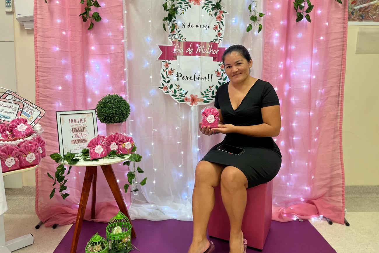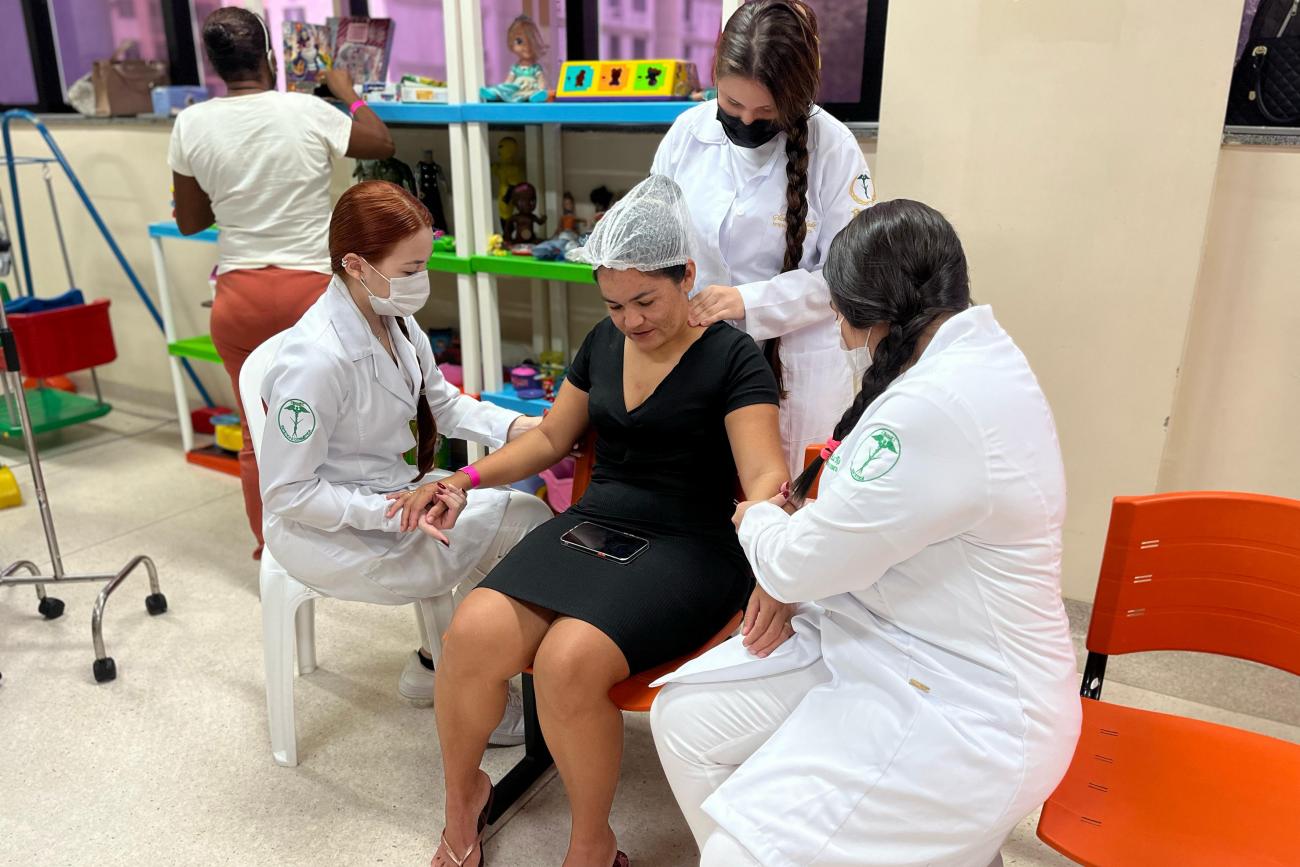 Roselia Benjamim, de 37 anos, acompanha o filho Elleson no tratamento contra a leucemia e aproveitou alguns serviços ofertados na ação do HoiolA coordenadora de Humanização do hospital, Natacha Cardoso, explica que a programação buscou contemplar todas as mulheres, desde usuárias e acompanhantes até as quase 400 colaboradoras, que prestam cuidados e apoio aos pacientes e suas famílias. A realização da ação em diferentes turnos permitiu que as interessadas fossem atendidas sem comprometer o funcionamento do serviço da unidade.
