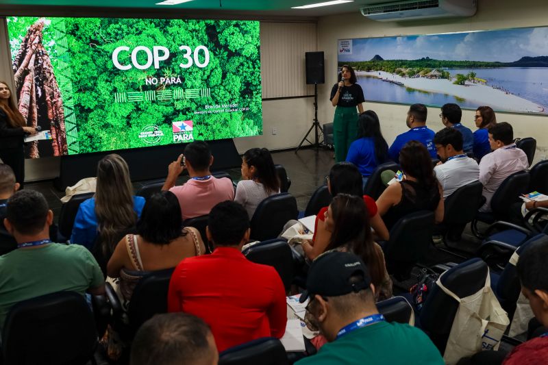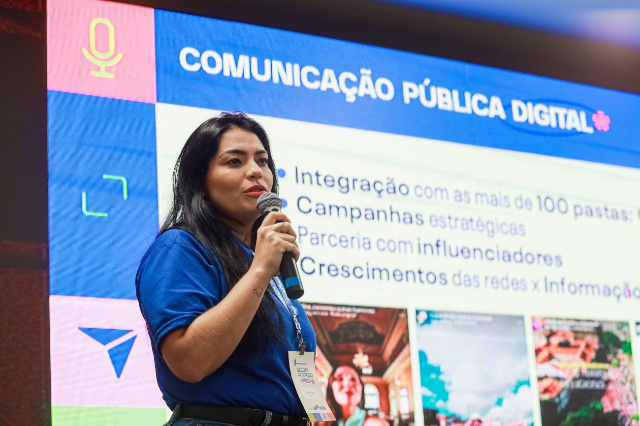Programação - O "Secom Por Todo o Pará" abriu com a palestra "Cop 30 na Amazônia: oportunidades e desafios", ministrada por Brenda Rassy, membro do Comitê Estadual para a realização da COP 30 e assessora da Vice-Governadoria do Estado do Pará.