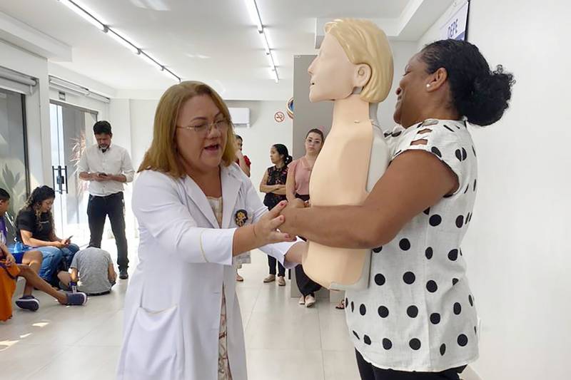 Alunos, pais e/ou responsáveis, e professores do Centro Educacional Ronaldo Miranda (Cerom), instituição sem fins lucrativos conveniada à Secretaria de Estado de Educação do Pará (Seduc) e que atende a estudantes com necessidades especiais, participaram nesta segunda-feira, 11, da capacitação em suporte básico de vida (primeiros socorros) realizada pelo Projeto Santa Casa nas Escolas.