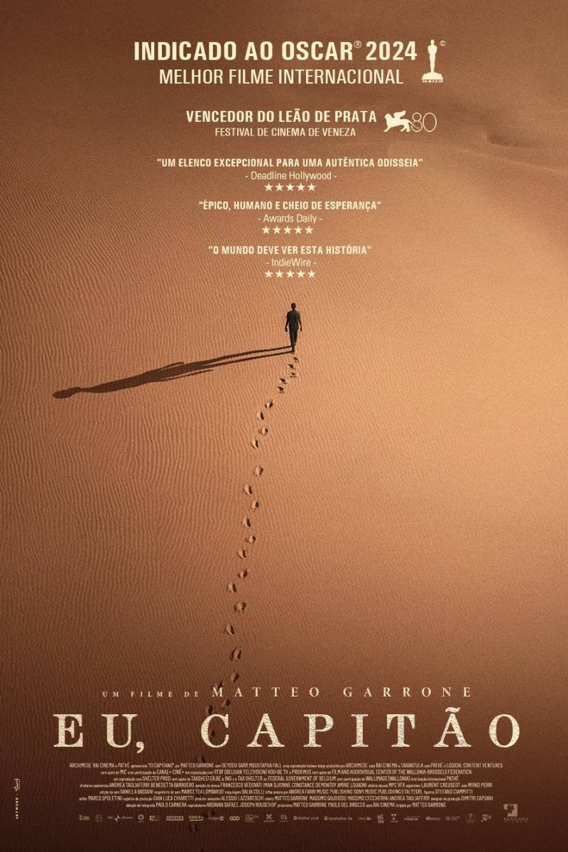 Sinopses: “Eu, Capitão” é um filme italiano dirigido por Matteo Garrone. Ele conta a história de dois irmãos, Seydou e Moussa, que anseiam por um futuro melhor e partem rumo à Europa em uma aventura, onde enfrentam os desafios do deserto, do mar e da própria essência humana.