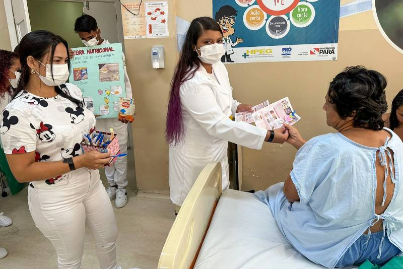 Quantas calorias comer por dia? Quais alimentos consumir diante de uma doença? Qual dieta ideal para fazer durante uma internação hospitalar? Perguntas como essas, são comuns e muitas vezes ficam sem respostas técnicas. Pensando nisso, o Hospital Público Estadual Galileu (HPEG), na Grande Belém, realizou nesta quinta-feira (14), uma ação especial, voltada para tirar dúvidas e orientar aos seus usuários sobre as verdades dos alimentos e o que podem, de fato, consumir durante o período de internação ou apenas como manter hábitos saudáveis.