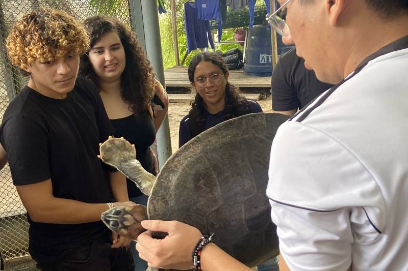 Essenciais para o ecossistema amazônico, os quelônios são répteis extremamente ameaçados pela interferência humana. “Como o ciclo reprodutivo desses espécimes é considerado sensível, o qual exige cuidados especiais, iniciativas que fomentam o manejo e conservação são fundamentais”, destacou Basílio Guerreiro, biólogo do Mangal das Garças, que demonstrou aos alunos como realizar o correto manuseio de quelônios.