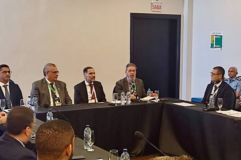 O secretário Nacional de Segurança Pública, Tomário Sarubo, também está presente no encontro, juntamente com Rodney Silva, diretor de Operações Integradas e de Inteligência, da Secretaria Nacional de Segurança Pública (Senasp).