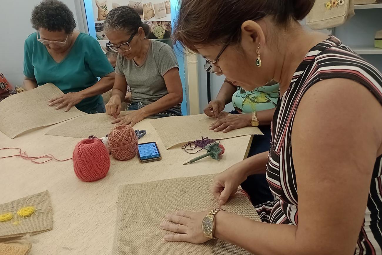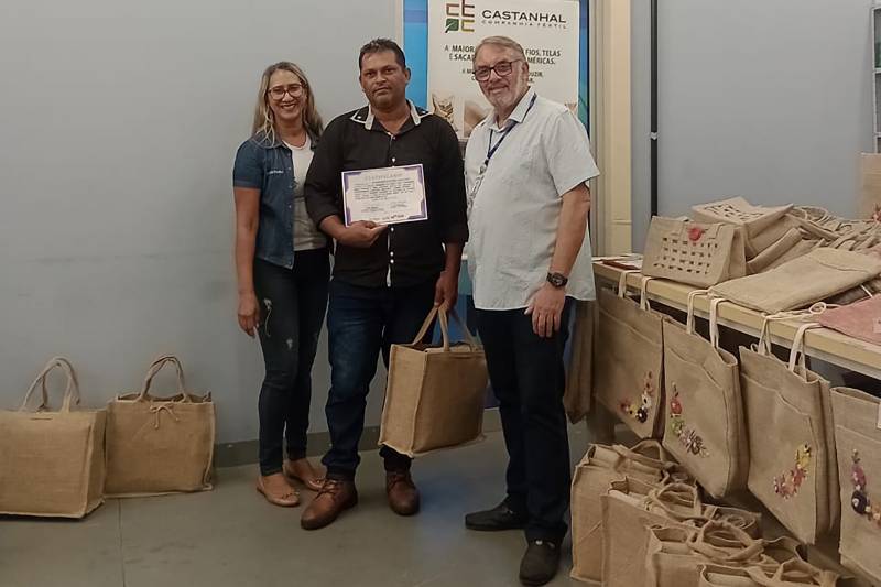 “Foi uma experiência única! E a expectativa é enorme para iniciar a produção de artesanato com a matéria-prima juta e malva. É a primeira vez que trabalho com esse material, e aprender novas técnicas nos auxilia a contribuir com uma renda extra para a família”, relata Antônia de Fátima, que já participou de seis oficinas na Usipaz.