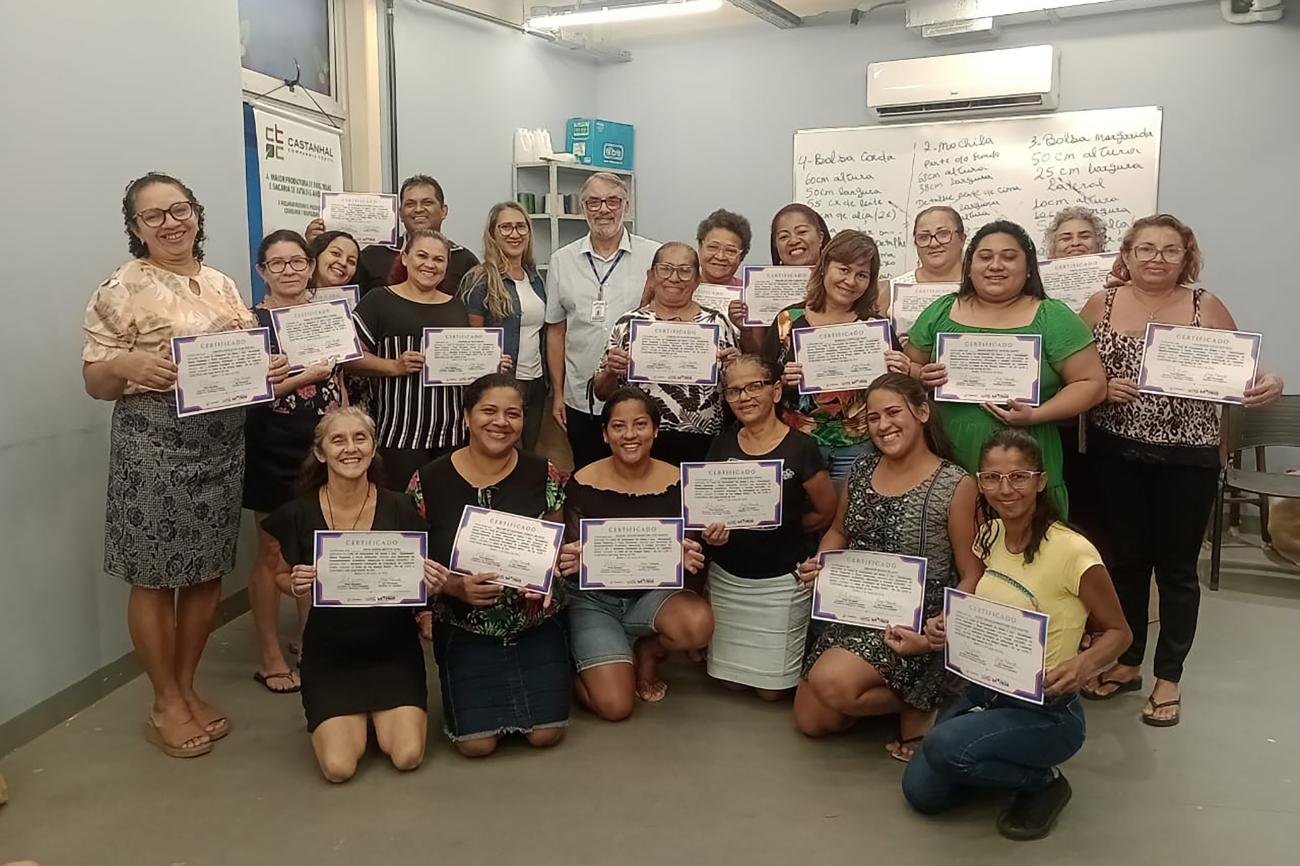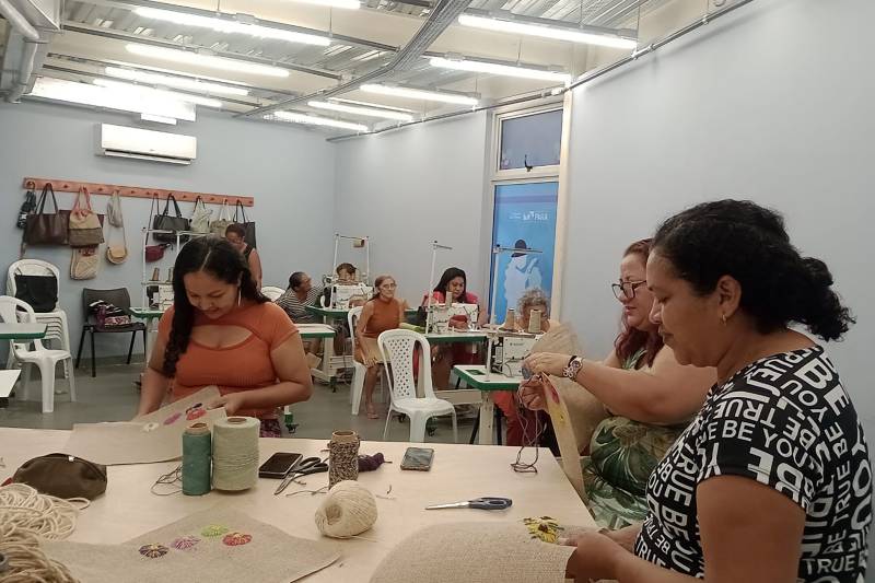 Na tarde desta sexta-feira (15), dezenove moradoras do entorno da Usina da Paz Pe. Bruno Sechi, no bairro do Benguí, em Belém, concluíram a oficina de Artesanato em Malva e Juta - modalidade: bolsas pequenas e peças artesanais, promovido pela Secretaria de Desenvolvimento Econômico, Mineração e Energia (Sedeme), em parceria com a Companhia Têxtil de Castanhal (CTC).