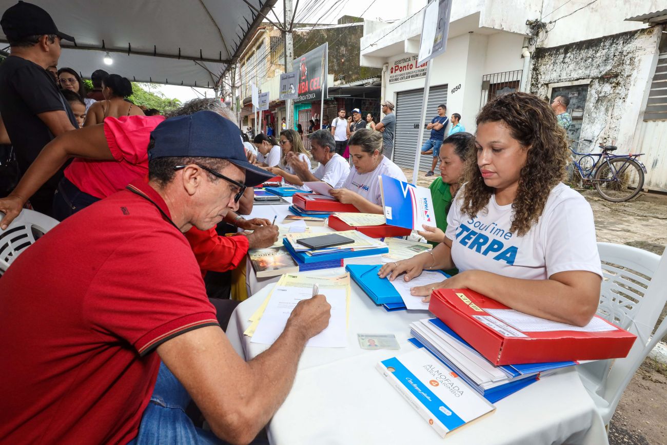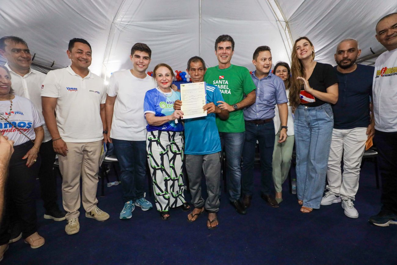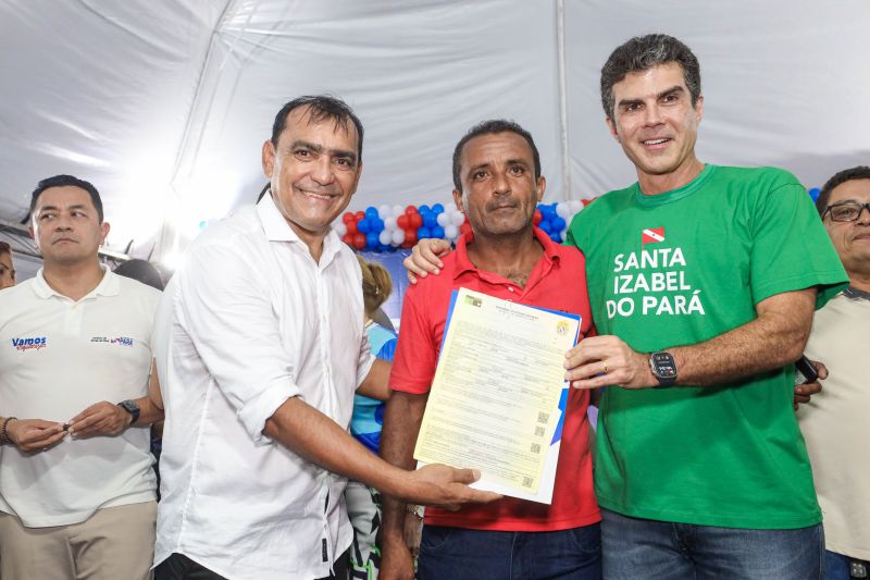 Em Santa Izabel do Pará, na Região Metropolitana de Belém, o governo estadual fez, nesta sexta (15), a maior entrega de títulos de terra do Brasil. Ao todo foram 977 documentações às famílias de produtores rurais das comunidades rurais de Vila do Lago, Catumbi, Pupunhateua, Meruim, 21 de Abril, Matupiriteua, Santa Quiteria, Vila Corinthians, Matupiriteua, Vila do Itá, P/ASS 12-01, e também de lotes urbanos (368). O governador Helder Barbalho esteve na cidade para agenda e participou do ato.