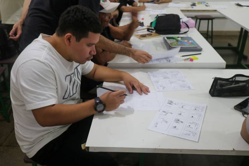 A Casa da Linguagem oferece a oficina Desenhos em Quadrinho e Produção em Fanzine. O instrutor do curso, Diogo Lima, falou da aceitação dos participantes ao conteúdo. “Essa oficina oportuniza às pessoas o acesso à linguagem de quadrinhos e à produção nesse formato de fanzine. Então, a gente contextualiza um pouco toda essa questão do campo de quadrinhos e da linguagem, como tiras, charge, revista, os quadrinhos digitais, entre outros”.
