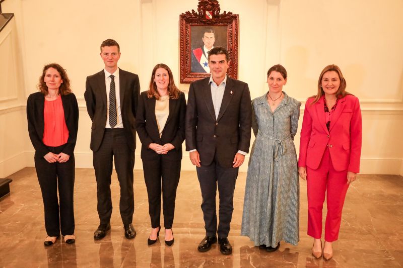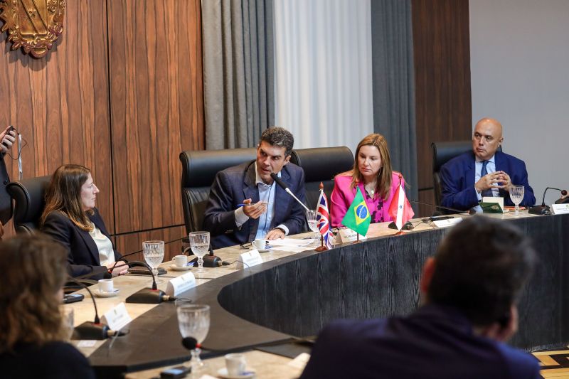 Na tarde desta quarta-feira (20), o governador do Pará, Helder Barbalho, acompanhado da Vice-governadora Hana Ghassan Tuma, que também presidente o Comitê Estadual da COP-30, receberam no palácio do governo uma comitiva do Reino Unido, liderada pela Embaixadora Stephanie Al-Qaq.