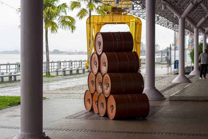 Outra obra em exposição na Estação das Docas são os “Tambores de luz: [in]versões na paisagem”, de Dirceu Maués, que fazem parte de uma série de instalações ou intervenções urbanas exibidas desde 2013, em Brasília. “‘[In] versões na paisagem’ foi como denominei os primeiros trabalhos de intervenções com câmeras escuras. Essas intervenções se aproximam da noção de instalações in situ ou site specific, pois propõem um diálogo com a paisagem local, com um ambiente ou com a especificidade de determinados espaços”, explica o artista.