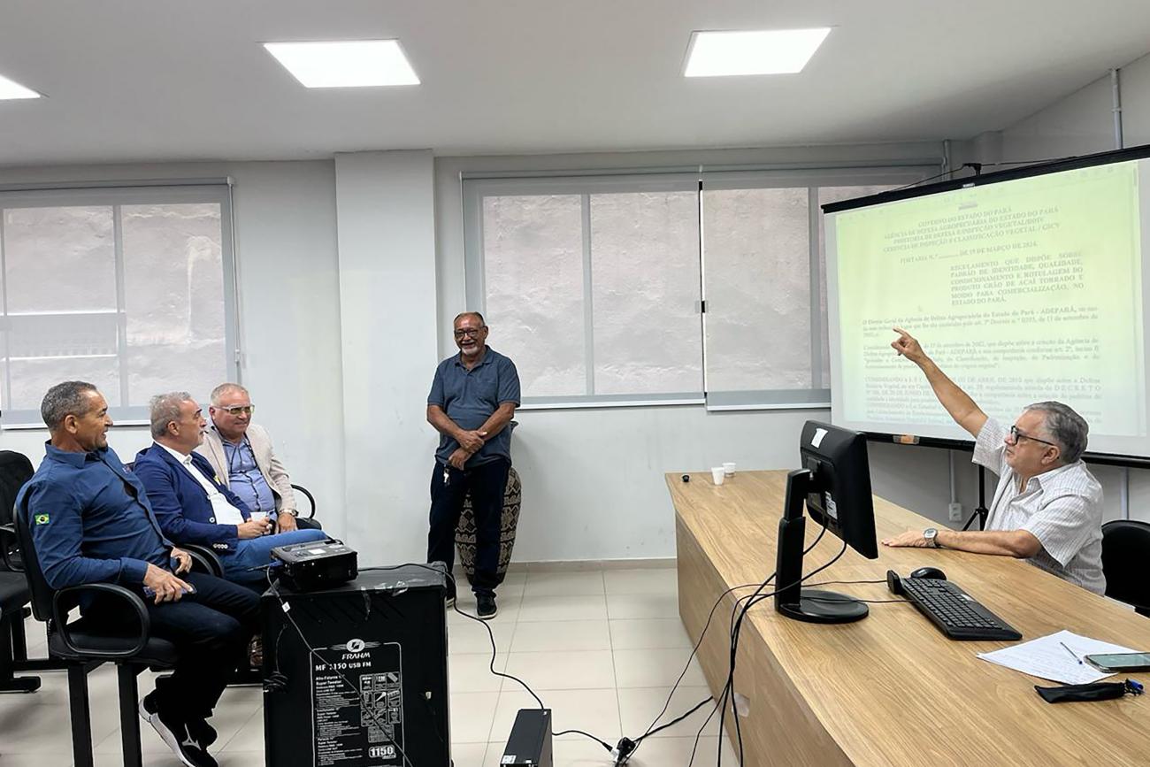 Gestores da Agência de Defesa Agropecuária do Estado do Pará (Adepará) se reuniram nesta semana com membros de todos os setores que integram a comissão formada para analisar a portaria que regulamentará o padrão de identidade e qualidade do produto grão de açaí torrado e moído, que está em processo de registro na Agência.
