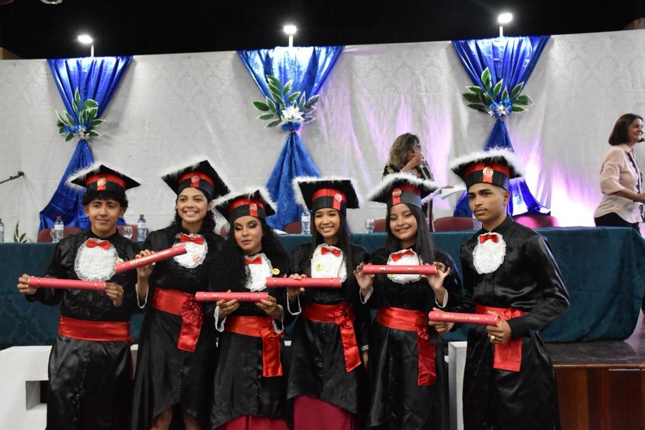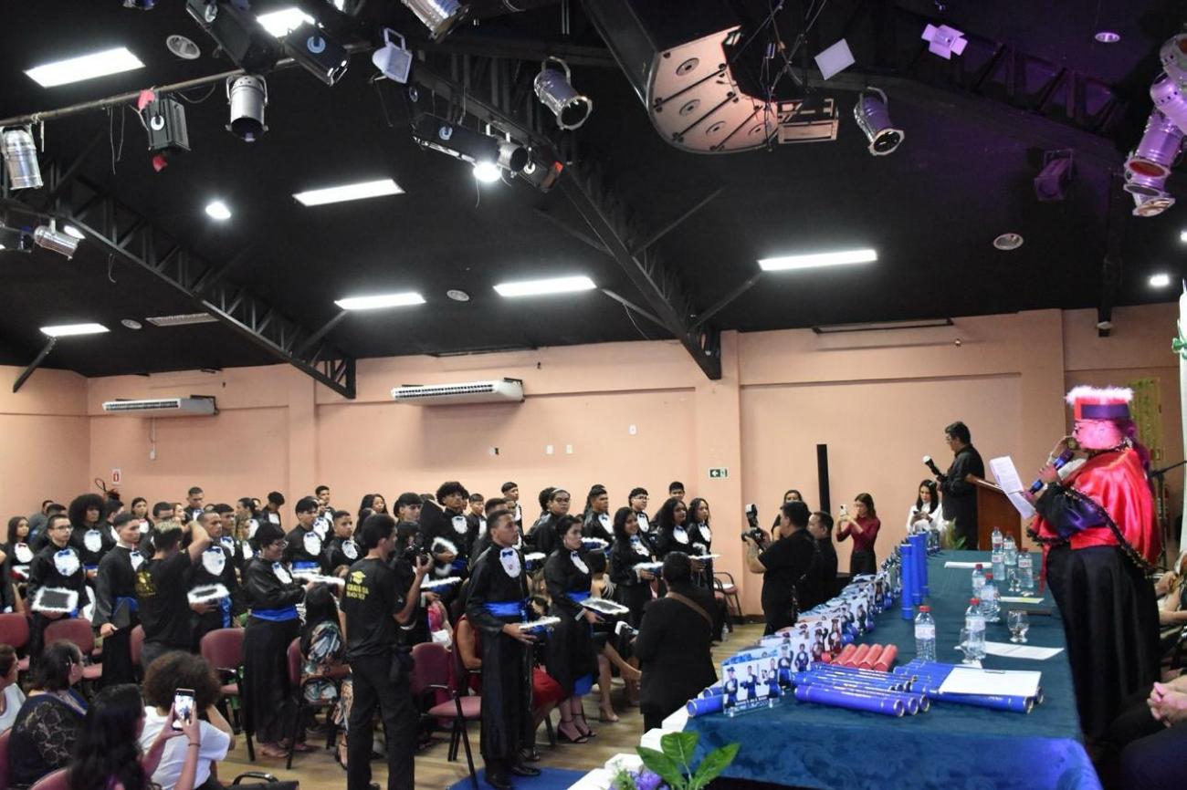 A cerimônia foi realizada na última sexta-feira, 22, no auditório da Eetepa Anísio Teixeira e contou com a presença do diretor de educação tecnológica da Sectet, Washington Corrêa, da diretora da escola, Rosângela Potter, a vice-diretora Haydeé Lima, professores, coordenadores e familiares e amigos dos formandos.