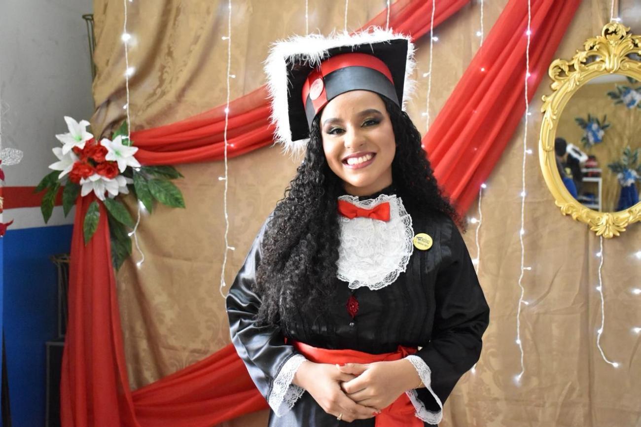 A aluna Laura Felipe, do curso técnico em segurança do trabalho, agradeceu pelos conhecimentos adquiridos ao longo de sua formação.
