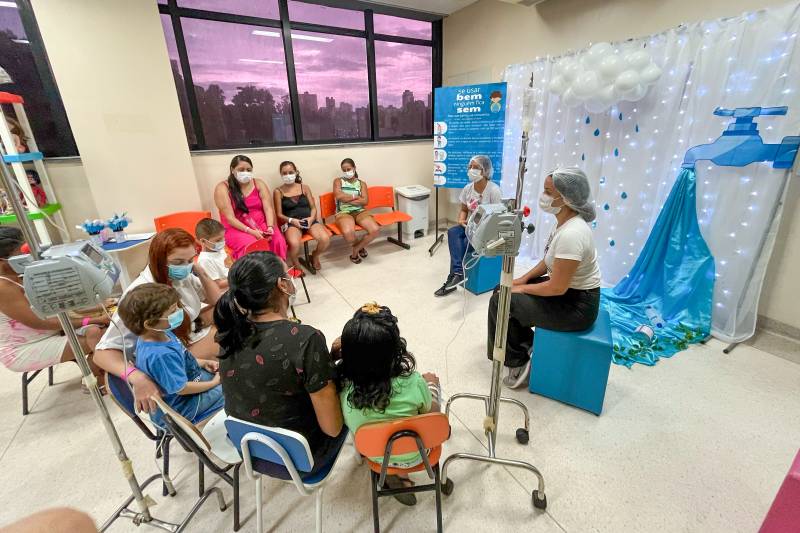 A brinquedoteca do segundo andar do Hospital Oncológico Infantil Octávio Lobo (Hoiol), em Belém, ganhou uma decoração especial em celebração ao Dia Mundial da Água. Com intuito de ressaltar a importância do uso sustentável do recurso hídrico e promover a conscientização sobre como evitar a poluição e contaminação dos ambientes aquáticos, colaboradores reuniram pacientes e acompanhantes em um bate-papo interativo.