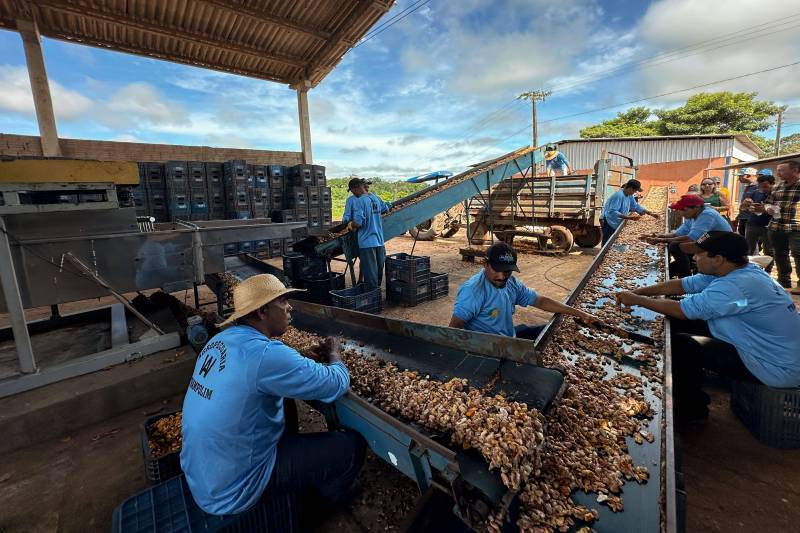 Sustentabilidade - O agricultor Emival Cruz possui uma propriedade de 18 alqueires em São Geraldo do Araguaia, ele planta cacau de forma sustentável, sem utilizar nenhum agrotóxico. "Esse processo é muito minucioso, pois toda lida é com o trabalho manual, assim como manejo no tratamento com o solo. Tem todo o processo da camada orgânica, todo um preparo que vem também, desde o preparo da muda. Recebi o apoio do governo do estado e ao longo desses cinco anos, não uso nenhum tipo de agrotóxico. Então o meu sistema lá já está totalmente bem equilibrado com 500 pés de cacau. A parceria do governo do estado foi fundamental, porque eles entram com a parte das mudas e com suporte técnico para a gente", conta ele.