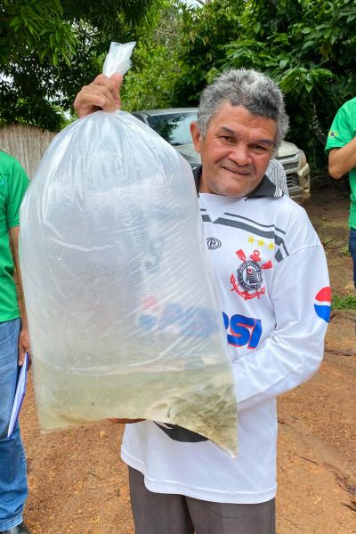 Neste final de março, 17 famílias da região do Travessão da Firma, na Gleba Assurini, receberam da Emater  um total de 10 mil e 500 alevinos e 85 quilos de ração, doados pela iniciativa privada, a fim de abastecer o novo ciclo produtivo.