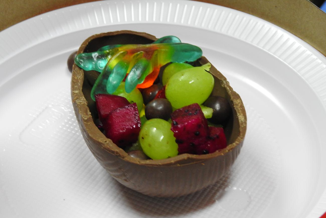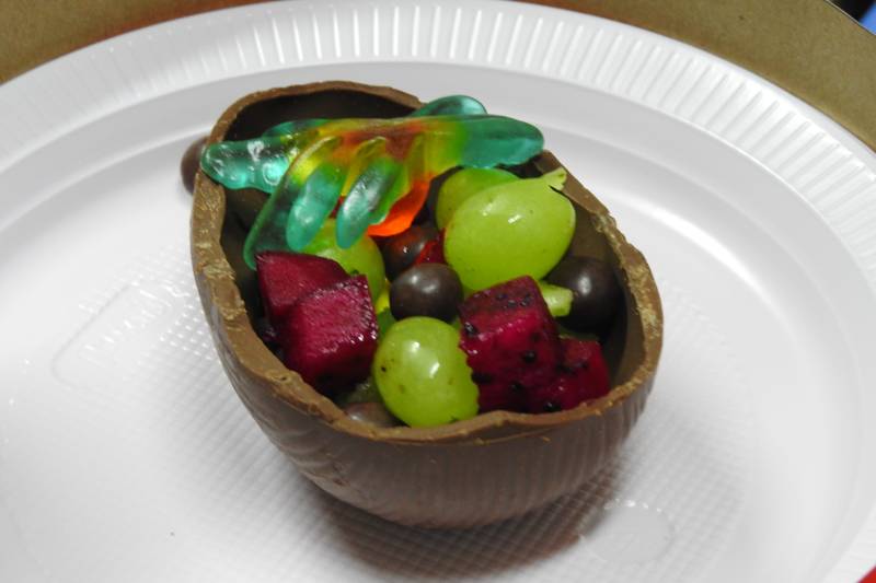 O momento de diversão das crianças também foi pensado com cuidado pelo setor responsável pelos alimentos. A nutricionista Erica Alves relata que mesmo com a presença do chocolate, a inclusão de frutas no cardápio da ação também foi pensada. “Já é de hábito as crianças consumirem tudo com bastante açúcar, ainda mais agora nesta época de Páscoa, mas é nosso dever incentivar o consumo de frutas. Nessa brincadeira, nós incluímos banana e uva justamente para incentivá-los a ter também uma alimentação mais saudável e que vá agregar nutrientes”, explicou a profissional.