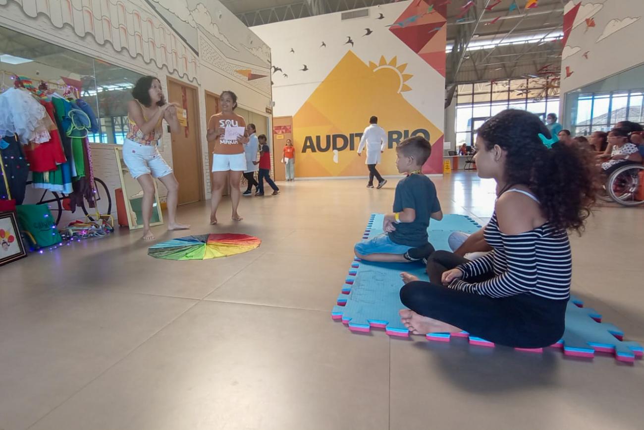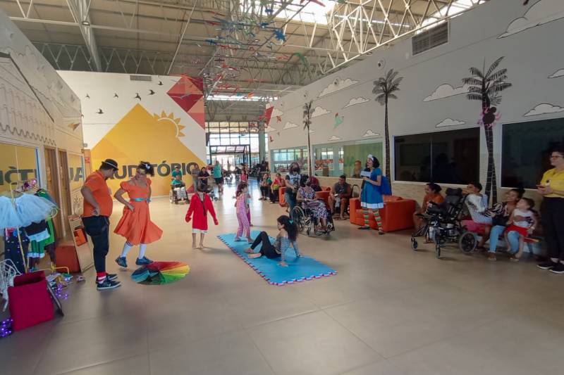 Participante e atuante no espetáculo, Rayanne Cruz, de 33 anos, trouxe o filho, Ryan Cruz, de 9 anos, para mais um dia de acompanhamento e não esperava uma manhã tão divertida em meio ao atendimento em saúde.