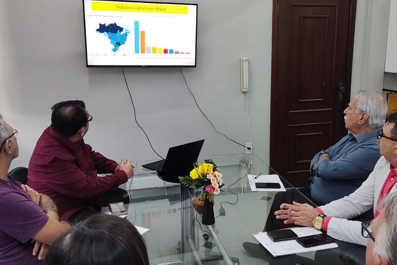 O secretário de desenvolvimento agropecuário e da pesca, Giovanni Queiroz, esteve reunido nesta quinta-feira (27), com a equipe de servidores da secretaria para a apresentação, pelo corpo técnico da Embrapa Amazônia Oriental, do projeto ‘Estratégia para a Melhoria da Produção Leiteira de Búfalas no Marajó’ que tem por base trazer melhorias para a cadeia produtiva da bubalinocultura leiteira, com emprego de técnicas que venham somar para o programa de recuperação econômica do Marajó. A bubalinocultura é uma das principais atividades agropecuárias do estado do Pará, desempenhando um papel crucial na dinamização da economia local e no impulso ao desenvolvimento socioeconômico da região.