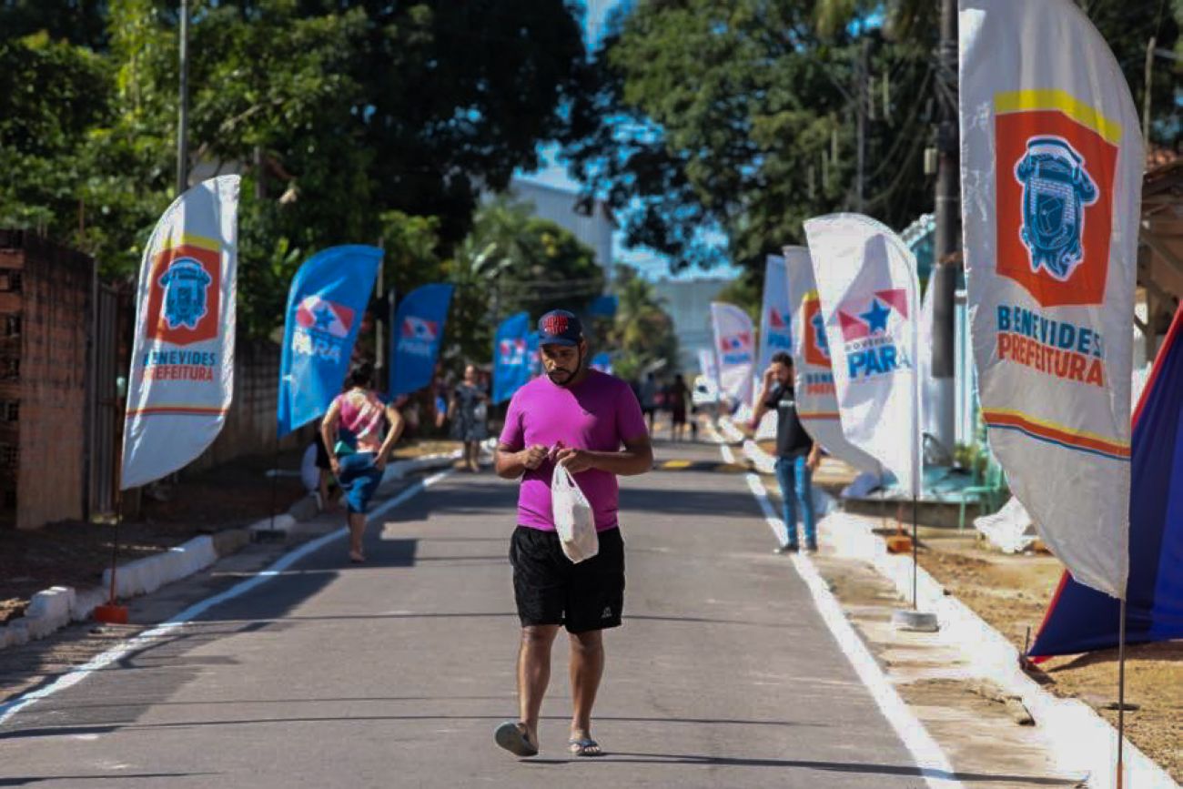 Durante a cerimônia de entrega das vias totalmente pavimentadas, o governador do Pará, Helder Barbalho, foi recebido pela população e conversou com os moradores do local. Ele destacou os investimentos do Estado para a melhoria da mobilidade urbana do município.