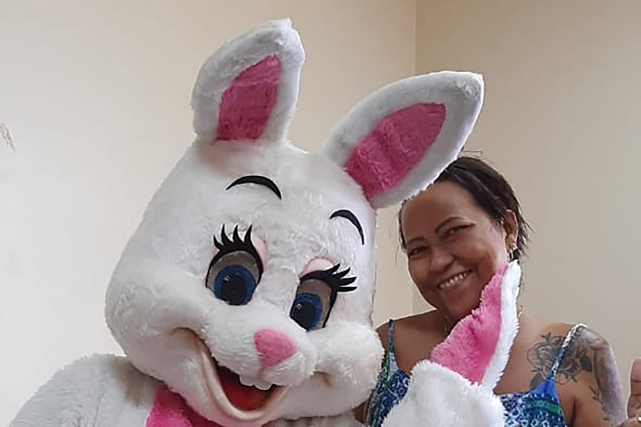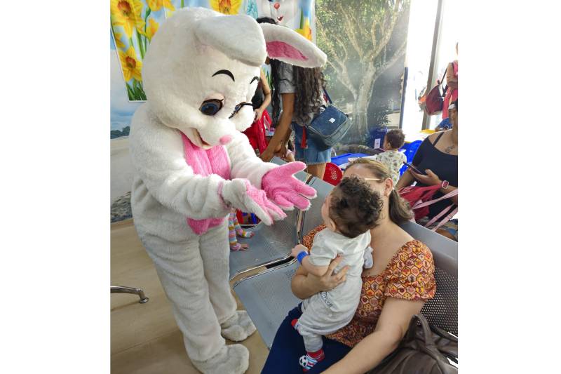 Visita da coelhinha Lilica encerra programação de Páscoa do Hospital Abelardo Santos