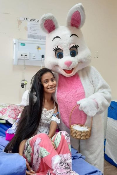 Quem se sentiu acolhida pelo abraço da coelhinha, foi Ana Maria Barbosa, de 27 anos. Ela está há um mês internada no HRAS, fazendo tratamento renal. Natural do município de Abaetetuba, no nordeste paraense, a paciente precisou ser encaminhada para o Abelardo devido a problemas renais.