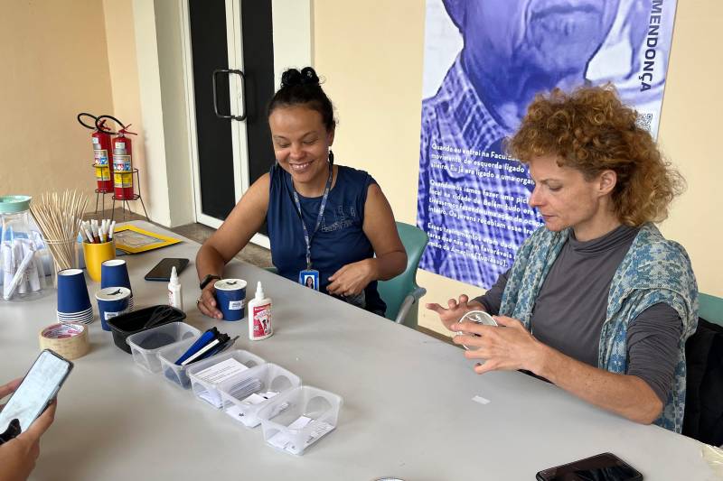 A professora Katja Hölldampf, de 39 anos, que participou da oficina, gostou da experiência diferente na visita à exposição. “Eu adorei a oficina, porque contextualiza por um lado a exposição e pelo outro lado ela permite interagir de forma criativa com a exposição. Então a gente cria um laço afetivo muito diferente do que em uma, digamos assim, visita convencional de entrar na sala de exposição, ver as obras e ir embora”.