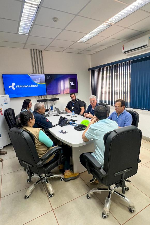 Durante a visita realizada nos dias 27 e 28 de março, o secretário Adjunto da Semas Rodolpho Zahluth Bastos foi acompanhado pelo diretor de Licenciamento Ambiental, Marcelo Moreno, e pela coordenadora de Energia, Infraestrutura, Fauna, Aquicultura e Pesca, Ana Beatriz Ramos. Durante a visita, os representantes da Semas conheceram a dinâmica da logística fluvial no corredor Tapajós e as ações socioambientais voltadas à descarbonização da cadeia de transporte utilizada pelas empresas que atuam em Miritituba.