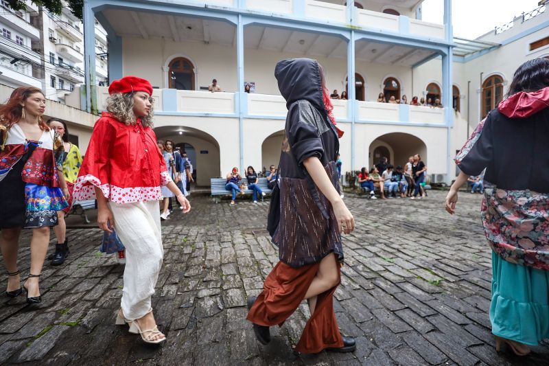 Com um dia rodeado de apresentações, a tarde começou com um desfile de moda organizado pela professora Jaque Carvalho, que usou o tema sustentabilidade para inspirar seus alunos. "A proposta é transformar a moda em uma força regenerativa, especialmente considerando o impacto significativo que a indústria da moda tem no meio ambiente. A ideia de reutilizar roupas de segunda mão, escolher peças em brechós e bazares, e ressignificar tudo isso é uma abordagem promissora para reduzir o desperdício e minimizar o impacto ambiental", disse a professora.