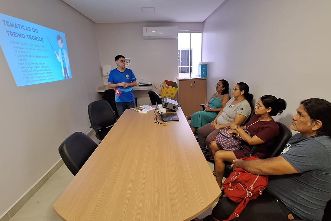 "Os acompanhantes podem aplicá-la no dia a dia, em casa, com os filhos para que a terapia possa ter sua extensão e não fique restrita somente no Cetea. Às vezes, a criança realiza a terapia e consegue fazer as atividades propostas aqui na instituição. Mas, quando chega em casa, se ela não tem esse suporte para aplicação do ABA, como vai replicar isso a outros ambientes além da terapia? Então, é muito importante que o reabilitando tenha com os pais essa interação para que a manutenção seja realizada", explica João Victor, psicólogo e terapeuta parental que conduz a atividade.