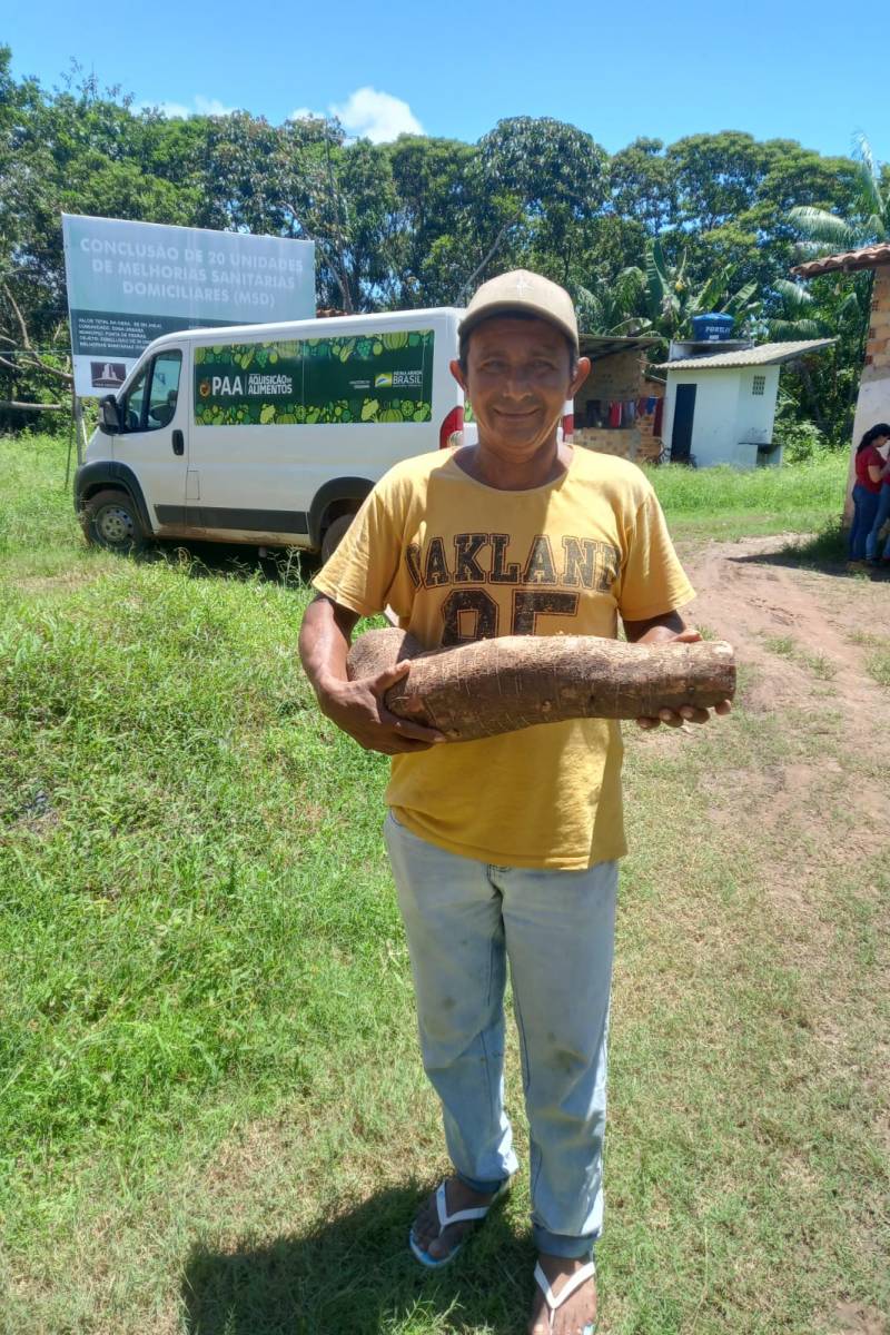 Em 2024, os agricultores familiares do município poderão acessar o valor de R$ 110 mil em compras governamentais. No primeiro trimestre do ano, 10 agricultores atendidos pela Emater já efetuaram a venda de cestas de alimentos somando R$ 15 mil em produtos, como macaxeira, banana, abóbora, alface, bacuri, manga e coco.