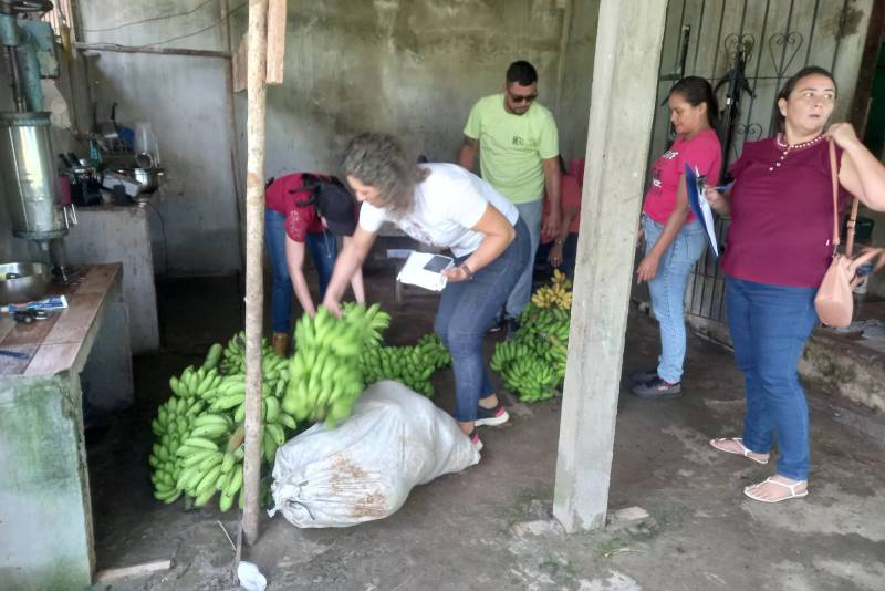 Suane Ribeiro Tavares, 39 anos, é uma das agricultoras atendidas pela Emater beneficiada com a aquisição dos produtos no PAA. Na venda, a agricultora comercializou banana, mas na propriedade da família, ela e o marido ainda vicejam açaí, cupuaçu, taperebá, manga, mamão e cheiro verde. A comercialização das frutas incrementa a renda da família que também trabalha com a piscicultura e a pesca artesanal de peixe e de camarão.