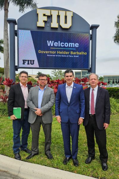 Em Miami, nos Estados Unidos, o governador do Estado do Pará, Helder Barbalho, participou de uma reunião com o presidente da Universidade Internacional da Flórida (FIU, na sigla em inglês), Kenneth Jessel, nesta quinta-feira, 4. E já no seu primeiro dia de agenda no país, que inclui a participação em uma conferência na Universidade de Harvard, em Boston, Helder discutiu parcerias entre a FIU e a Universidade do Estado do Pará (UEPA), além de ações de fomento à bioeconomia, com trocas de conhecimento e incremento ao setor de serviços no Pará a partir de capacitações, visando a 30ª Conferência da ONU sobre Mudanças Climáticas (COP 30), marcada para novembro de 2025, em Belém, capital do Estado.