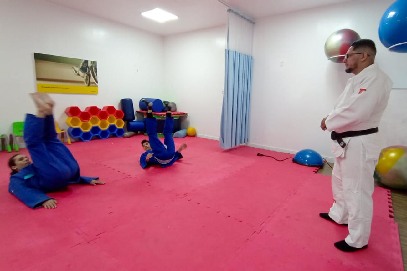 Benefícios - O terapeuta, que conduz o judô adaptado, destacou que são vários os benefícios das atividades físicas. “Para um usuário com diagnóstico de paralisia cerebral, por exemplo, estimula o tônus muscular, o equilíbrio corporal, o controle de tronco, a coordenação motora e noção espacial, tudo para que ele possa ter também inclusão social na sua rotina fora do CIIR”, disse ele, ao ressaltar que, de acordo com o perfil do reabilitando, a equipe de profissionais de Educação Física monta o plano terapêutico que inclui esporte adaptado como suporte no acompanhamento clínico.