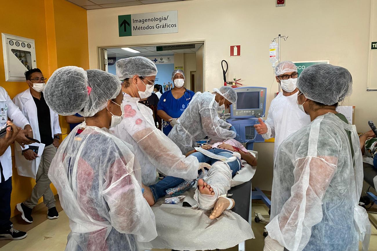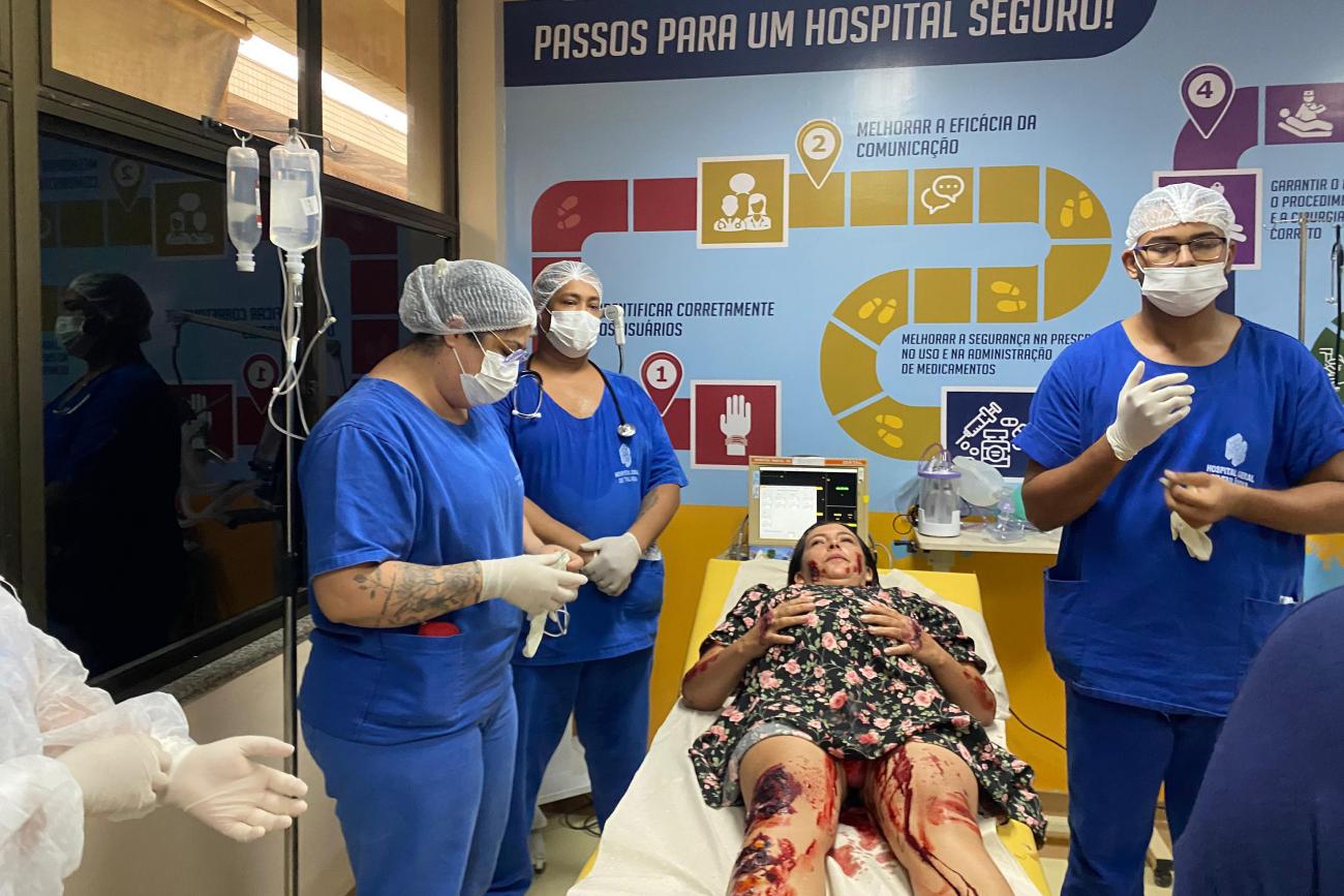 "Cada maquiagem e preparação das lesões contou com a orientação dos profissionais da Assistência, para tornar os ferimentos realistas", explicou Dyones Alves, enfermeiro no HGT e responsável pela preparação das vítimas.
